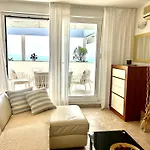 Denne 105 m^2 store ferielejlighed har udsigt over havet og værelser med tv, et opholdsområde og et skrivebord. De er udstyret med elegante møbler. Badeværelse indeholder også en hårtørrer og håndklæder med en bruser og et badekar.